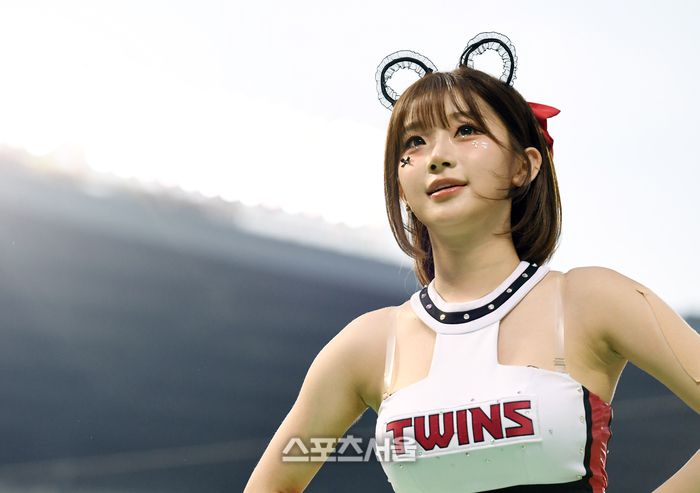 치어리더 이주은이 8일 잠실구장에서 열린 2025 KBO리그 키움과 LG의 경기에서 열띤 응원전을 펼치고 있다. 2025. 7. 8.
