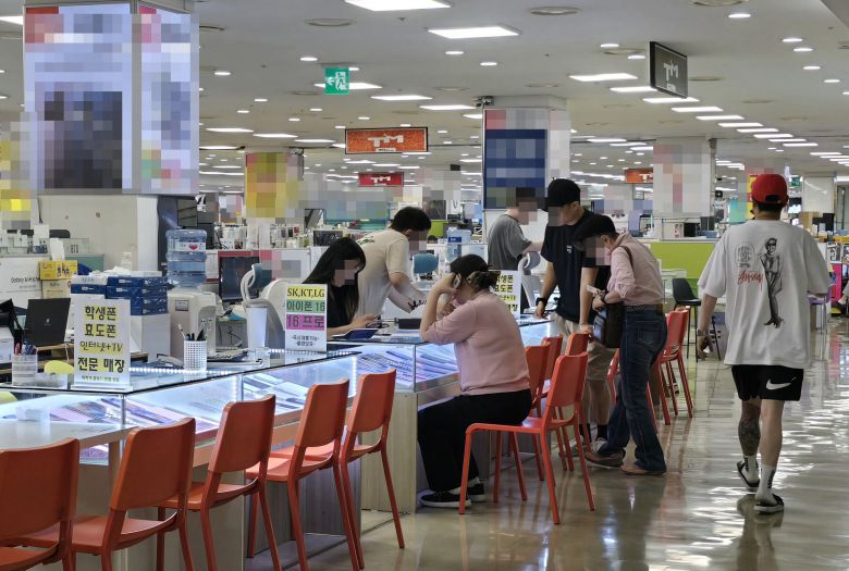 지난 7일 오후 서울 신도림 테크노마트 9층. 평일 낮 시간인데도 휴대전화 유통 상가에는 스마트폰을 구매하러 온 고객들로 북적였다. SK텔레콤이 해킹 사고로 오는 14일까지 위약금을 물지 않겠다고 발표하자, 이탈하는 SK텔레콤 고객을 잡기 위한 마케팅을 기대한 현상으로 풀이된다. 온라인에서도 불법 보조금(리베이트)을 많이 받을 수 있는 이른바 ‘성지’ 시세 문의 글이 증가하고 있다.
