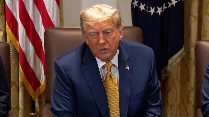 백악관에서 각료회의를 주재하던 트럼프 대통령이 관세를 언급하다 갑자기 한국 얘기를 꺼냈습니다.