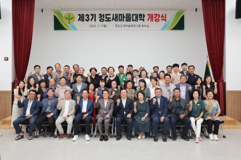 청도군은 7일 새마을회관에서 '2025년 제3기 청도새마을대학' 개강식을 열었다. 이날 행사에는 김하수 청도군수를 비롯해 기화서 청도우리정신문화재단 대표이사, 송건섭 대구대 새마을운동연구센터장 등 80여 명이 참석했다.