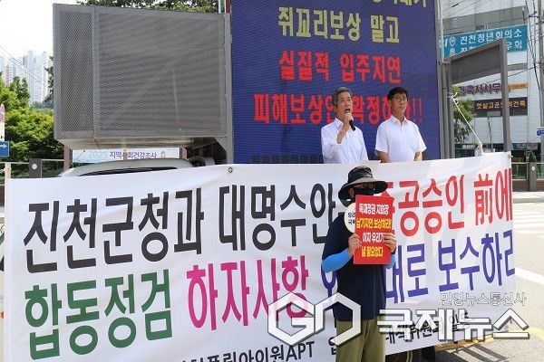 한편 지난 7월 2일 진천군청 관계자와 입주예정자들이 공동 실시한 합동점검에서는 여러 지적사항이 확인됐음에도 시행사는 제대로 된 하자 보수를 실시하지 않은 채, 오는 7월 11일 입주민들에게 입주 일정을 일방적으로 통보하고 있다고 했다.