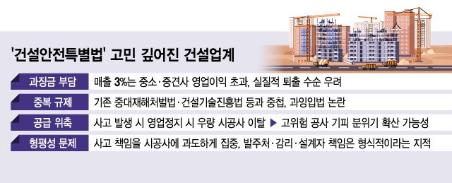 건설업계는 과징금과 영업정지가 경고 수준의 '계도'가 아닌 사실상의 '징벌' 조치라는 점에서 강하게 반발하고 있다. 특히 이미 중대재해처벌법에 따라 사고 발생 시 안전책임자와 경영책임자까지 형사처벌을 받는 상황에서 추가적인 제재는 과잉입법이라는 목소리가 크다.