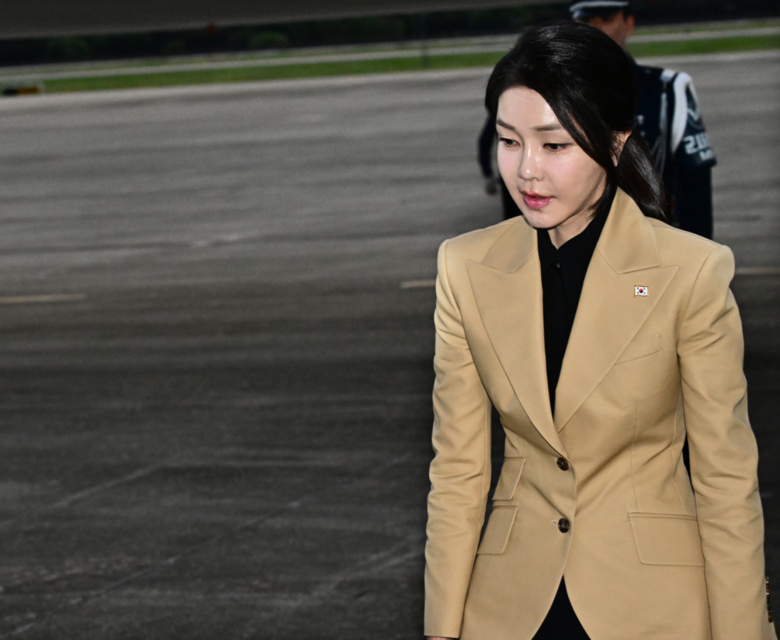 김건희 여사가 2024년 9월22일 2박4일 간의 체코 순방을 마치고 성남 서울공항으로 입국하고 있다. 대통령실사진기자단 |