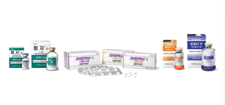 보령이 LBA 전략으로 인수한 의약품인 젬자와 자이프렉사, 알림타(왼쪽부터). 보령 제공