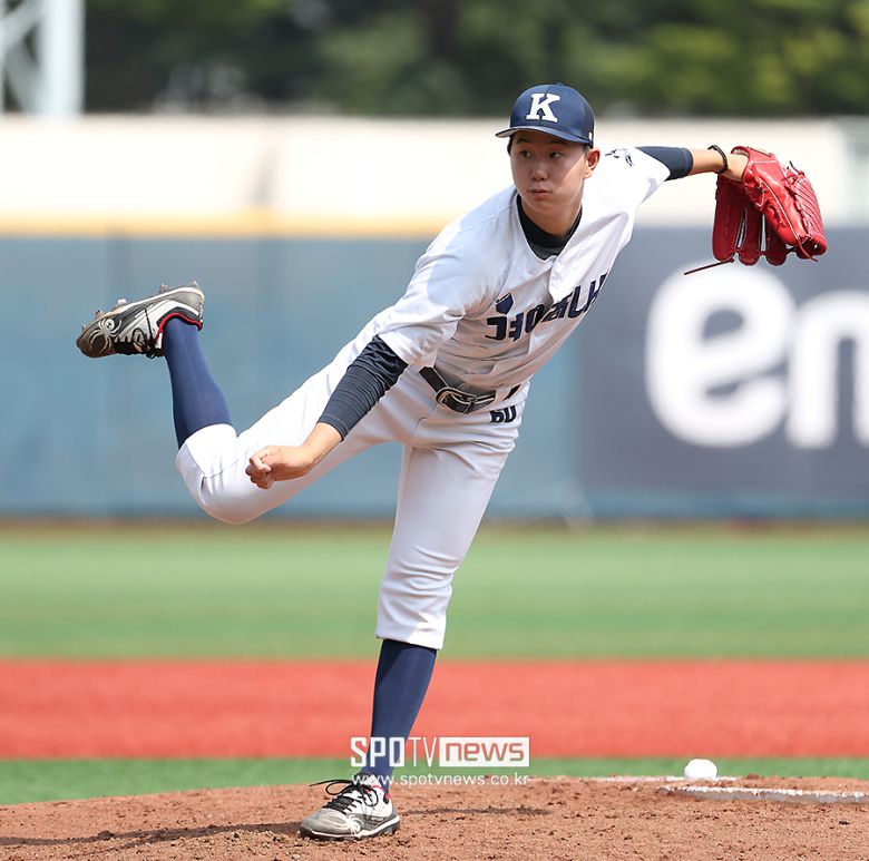 [스포티비뉴스=목동, 곽혜미 기자] '제80회 청룡기 전국고교야구선수권대회' 경남고와 경기항공고의 8강전이 9일 오전 서울 양천구 목동야구장에서 열렸다. 경남고 선발 장찬희가 역투하고 있다.