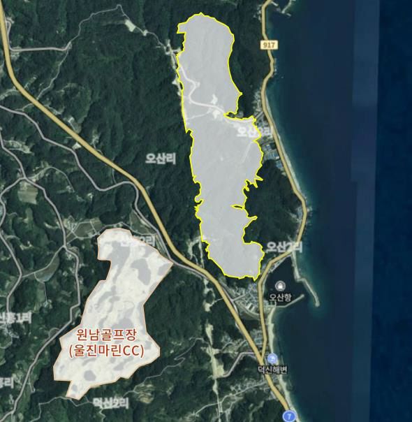 오션리조트 및 골프장 개발에서 민간사업자 공모를 진행하는 골프장 위치도/울진군 |