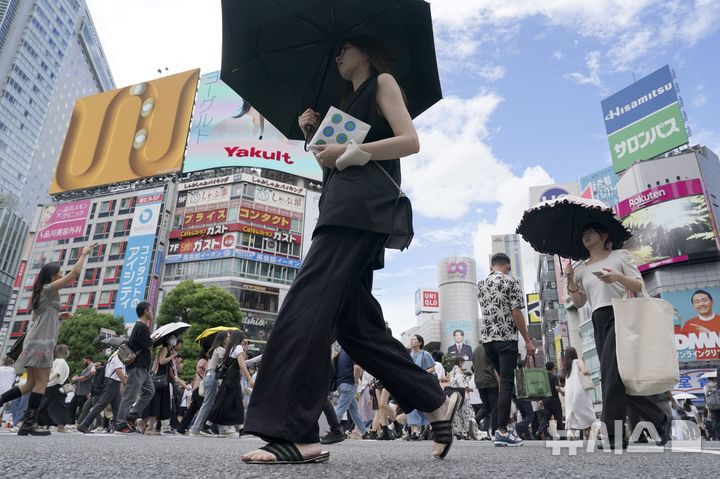 [도쿄=AP/뉴시스]미국과 관세 협상을 벌이는 일본이 실제 관세가 발효될 경우 자동차 분야에서만 큰 타격을 받는게 아니라는 지적이 제기됐다. 항공기 부품, 건설기기 등의 전체 수출 중 미국의 비중이 50%가 넘는 산업도 큰 타격을 받는다고 니혼게이자이신문(닛케이)이 9일 보도했다. 사진은 지난해 8월 28일 일본 도쿄 시부야의 한 횡단보도에서 시민들이 걸어가고 있는 모습. 2025.07.09. |