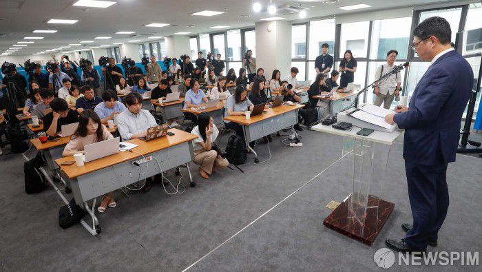 [서울=뉴스핌] 류기찬 인턴기자 = 이윤수 증선위 상임위원이 9일 오전 서울 영등포구 한국거래소에서 열린 ‘자본시장 불공정거래 근절 실천방안’ 합동브리핑에서 발언을 하고 있다. 2025.07.09 ryuchan0925@newspim.com