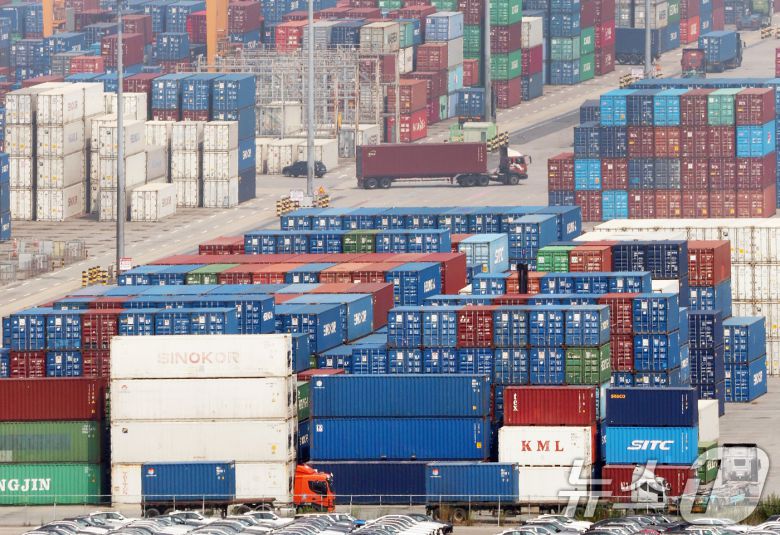 도널드 트럼프 미국 대통령이 8월 1일부터 한국에 25%의 상호관세를 부과하겠다고 7일(현지시간) 밝혔다. 지난 4월 2일 발표 때와 같은 관세율을 유지, 한국 입장에서는 관세율이 높아지는 최악의 상황은 피했고 협상 기간도 연장되는 결과를 얻었다. 사진은 8일 경기 평택시 포승읍 평택항에 수출용 컨테이너들이 세워져 있는 모습. 2025.7.8/뉴스1 ⓒ News1 김영운 기자 |