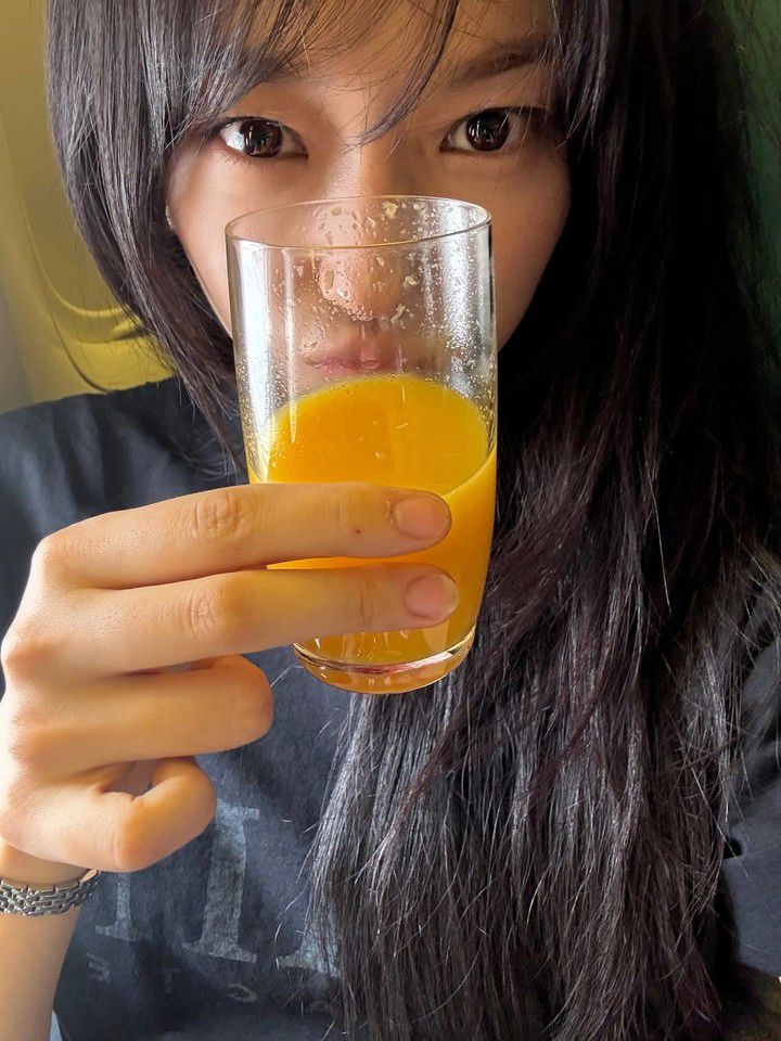 투명한 컵을 눈 앞에 들고 카메라를 응시하는 모습에서 노윤서만의 귀여운 감성이 느껴진다.