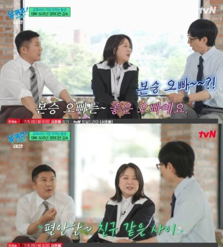 김숙은 "그날 윤정수 오빠랑 구본승 오빠 만나고 파티 할 거다. '숙이의 남자들'이다"라고 덧붙여 웃음을 자아냈다. 그러나 김숙은 지난 4일 tvN '유 퀴즈 온 더 블럭'에 출연해 "구본승 오빠는 그냥 좋은 오빠다. 편안한 친구 사이"라고 선을 그었다.