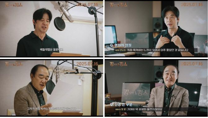 [이데일리 스타in 김보영 기자] 북미를 뒤흔든 글로벌 K애니메이션 영화 ‘킹 오브 킹스’(감독 장성호)가 마침내 국내 개봉하는 가운데 차인표, 권오중, 장광, 세 배우의 압도적인 연기력과 인터뷰가 담긴 ‘보이스 오브 빌런즈: 더빙 현장’ 영상이 9일 전격 공개됐다.