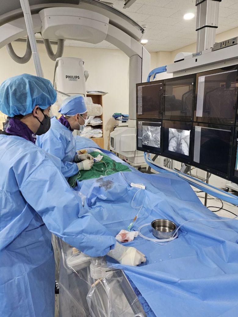 온병원 응급실은 급히 심혈관센터 이현국 센터장에게 연락해 응급으로 혈관조영술을 시행했다. 환자의 상태는 좋지 않았다. 환자는 계속적으로 심한 흉통을 호소했고, 심혈관 조영술상 심혈관의 석회화가 너무 심해 풍선 카테터도 통과하기 어려웠지만, 이현국 센터장은 스텐트를 성공적으로 삽입하고 환자는 생명을 건지게 됐다.