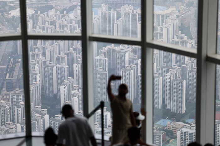 정부가 ‘6·27 가계부채 관리방안’을 발표한 뒤 서울 부동산 시장에서 거래 및 집값 상승폭이 일부 둔화하는 흐름이다. 지난 6일 서울 송파구 롯데월드타워 전망대 서울스카이에서 바라본 전경. 연합뉴스