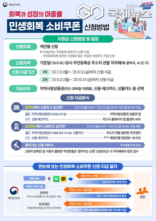 (천안=국제뉴스) 이원철 기자 = 천안시는 오는 21일 부터 정부의 경기 진작 최우선 정책인 민생회복 소비쿠폰 신청·지급을 민생경제 회복을 위해 모든 시민에게 '민생회복 소비쿠폰'을 신청·지급한다고 밝혔다.