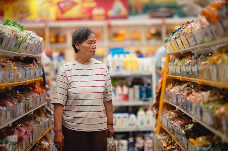 6월 9일 중국 상하이의 식료품점에서 한 여성이 매대를 둘러보고 있다. /EPA연합뉴스 |