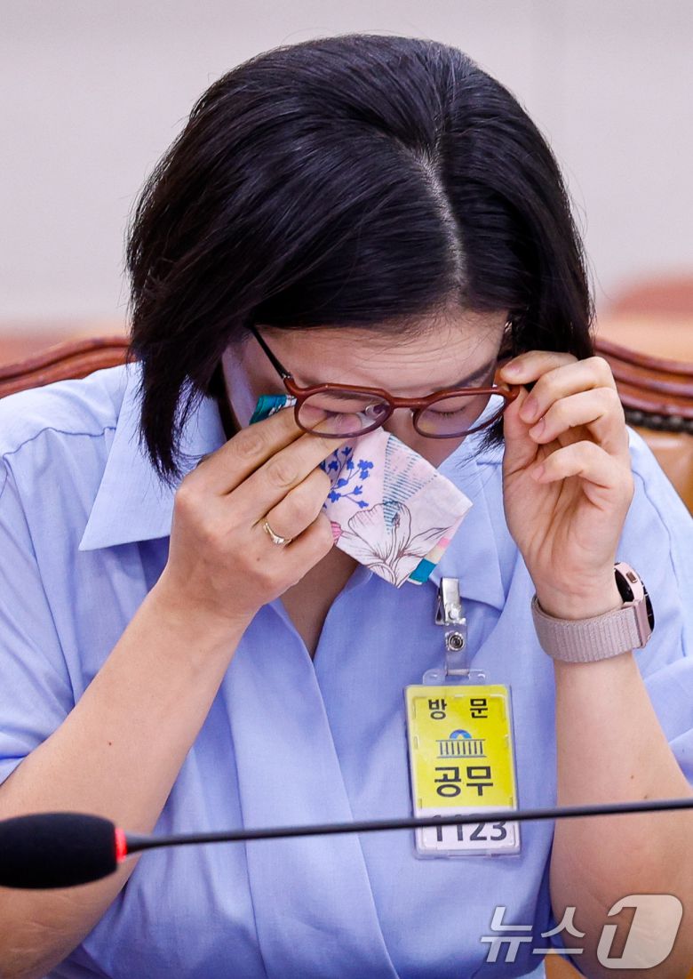 (서울뉴스1) 안은나 기자 = 김예원 장애인권법센터 대표(변호사)가 9일 오후 서울 여의도 국회 법제사법위원회 회의실에서 열린 검찰개혁 법안 관련 공청회에서 진술을 마친 뒤 눈물을 닦고 있다. 2025.7.9/뉴스1coinlocker@news1.krCopyright ⓒ 뉴스1. All rights reserved. 무단 전재 및 재배포, AI학습 이용 금지.이 기사의 카테고리는 언론사의 분류를 따릅니다.0공유하기