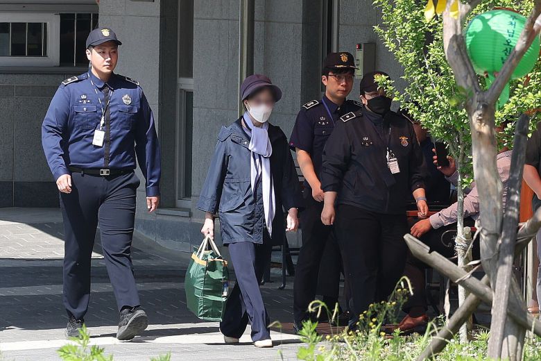 통장잔고증명서 위조 등의 혐의를 받고 있는 윤석열 대통령의 장모 최은순 씨가 2024년 5월 14일 서울 송파구 서울동부구치소에서 가석방되고 있다. / 뉴스1 |