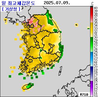 반면 강릉(31.9도), 울산(31.1도), 대구(31.1도) 등 동쪽 지역은 비교적 낮은 체감온도를 기록했다.