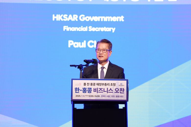 폴 찬 홍콩 재정사장(재무장관격)은 9일 서울서 열린 ‘한-홍콩 비즈니스 오찬’서 한국 기업의 홍콩 진출 장점에 대해 이같이 말했다. 이날 행사는 홍콩경제무역대표부와 대한상공회의소가 공동 주최했다.