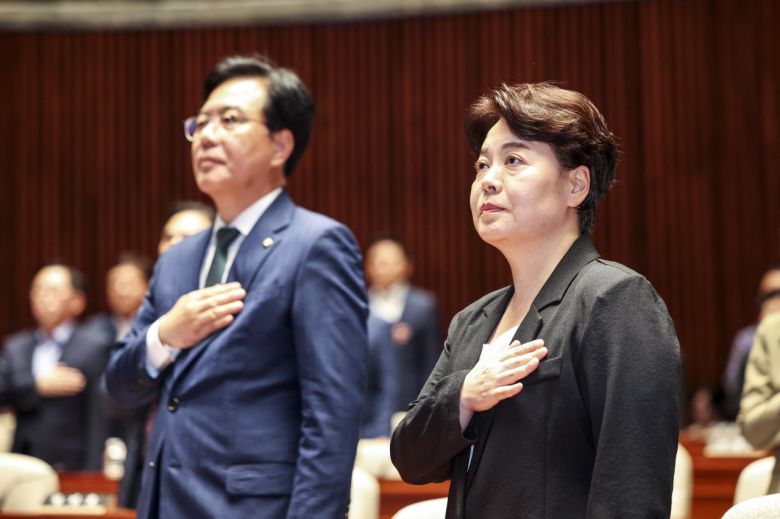 송 위원장은 "민중기 특검(김건희 특검)은 삼부토건 주가조작 사건을 수사한다고 알려져 있다. 그 대신 양평 고속도로 의혹, 지방선거 공천 의혹으로 야당 국회의원을 출국 금지시키고 압수수색하고 있다"며 "제대로 수사나 하려나 모르겠다. 쿡쿡 찔러보고 있는 것인데, 정상적인 수사보다 야당 망신주기를 하고 있다"고 비판했다.