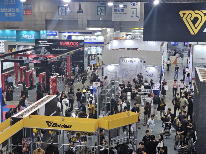 스마트 기술을 적용한 최신 안전장비들도 관람객의 눈길을 끌었다. 아스가드 부스에 전시된 스마트 안전모는 디지털 무전기, 블루투스 기반 통신, 체감온도 센서, 위치 추적 시스템 등 핵심 기능을 하나로 통합했다. 작업자의 위치·착용 여부·체감온도 등을 실시간 파악해 위험 상황에 빠르게 대응할 수 있으며, 충격 감지와 블랙박스 기능까지 갖춰 사고 기록도 가능하다. 아스가드 관계자는 "이 제품은 단순한 보호구가 아니라 이동형 스마트 관제 시스템"이라고 강조했다.