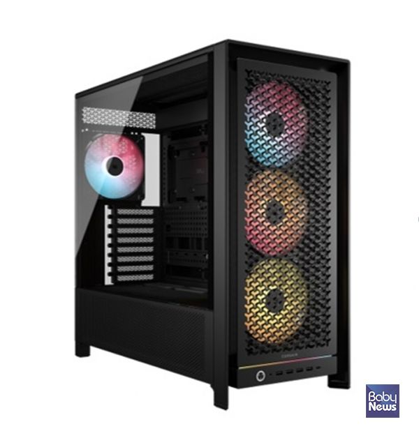 ‘프레임 5000D’는 데이지 체인 방식의 140mm RS 팬 4개를 기본 탑재, 화려한 ARGB 라이팅 버전 또는 절제된 non-RGB 버전으로 출시된다. ⓒ커세어
