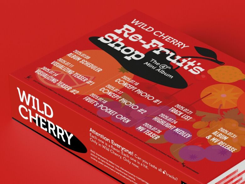 공개된 스케줄러는 레드 배경 속 알록달록한 과일 그림과 함께 '와일드 체리'의 티징 일정이 빼곡하게 적힌 박스가 놓여 있는 이미지로, 강렬한 색감과 유니크한 디자인이 단번에 시선을 사로잡았다.