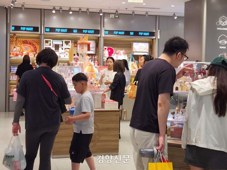 베이징 중심가 쇼핑몰에 입점한 팝마트에 사람들이 몰려 있다. 2025년 6월 26일 촬영. 박은하 기자. |