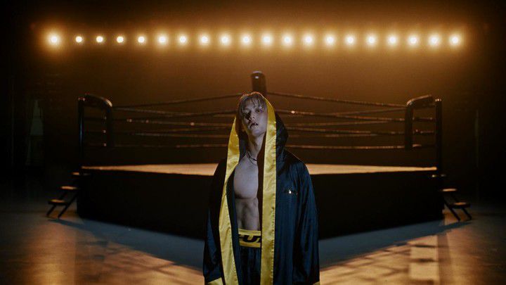영상은 어두운 공간에서 후드 가운을 입고 고개를 숙인 이민혁의 모습으로 시작된다. 가운 사이로 드러난 선명한 복근이 시선을 사로잡으며, 조명이 켜지자 이민혁의 뒤편에 서서히 나타난 사각링이 압도적인 분위기를 자아냈다.