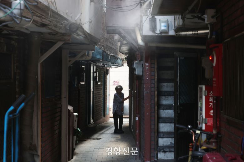 기록적인 폭염이 계속되고 있는 9일 서울 종로구 쪽방촌에 쿨링포그가 가동되고 있다. 2025.07.09 한수빈 기자 |