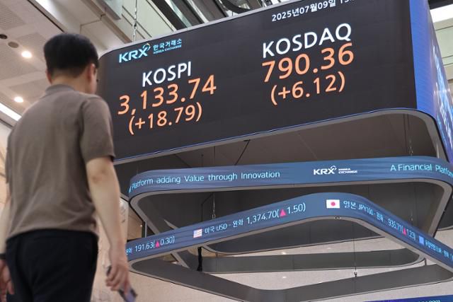 9일 서울 여의도 한국거래소 현황판에 코스피, 코스닥 지수가 표시돼 있다. 연합뉴스