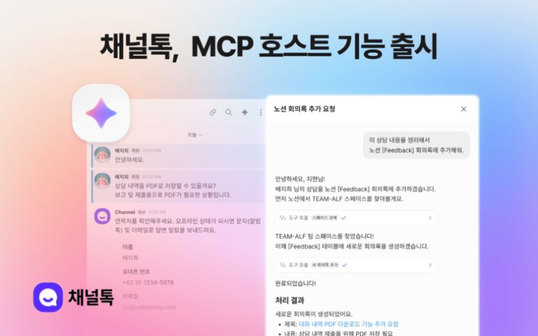 올인원 AI 비즈니스 메신저 ‘채널톡’을 운영하는 (주)채널코퍼레이션(대표 최시원)이 사내 업무 보조용 AI 툴 ‘팀 알프’에 업무 자동화 환경 구축을 위한 MCP 호스트 기능을 출시했다고 9일 밝혔다.