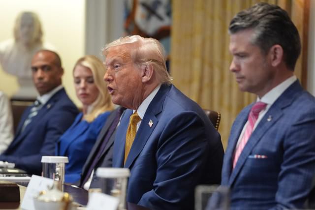 도널드 트럼프 미국 대통령이 8일 백악관에서 주재한 내각회의에서 발언하고 있다. 워싱턴=AP 뉴시스
