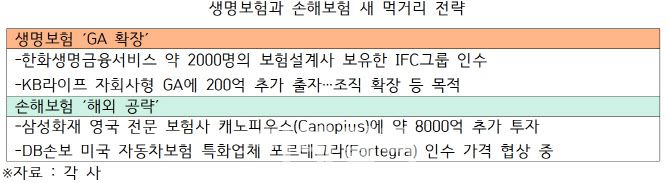 9일 보험업계에 따르면 한화생명의 자회사형 GA 한화생명금융서비스는 지난 7일 전국 114개 본부와 약 2000명의 보험설계사를 보유한 IFC그룹을 인수하고 자회사로 편입했다. KB라이프도 이달 초 자회사형 GA인 KB라이프파트너스에 200억원을 추가 출자하며 조직 확장에 나섰다. 해당 GA는 약 2153명의 설계사를 확보하고 있다.