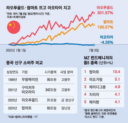 셰톈위안 평화자산운용 펀드매니저는 "중국의 인구 보너스(population dividend)가 끝나면서 획기적 제품을 제공하는 개별 종목에 더욱 주목해야 한다"고 말했다. 그는 '평화 셀렉티드 리턴 유연배분 믹스드 펀드'를 운용하며 마오타이를 편출하고 팝마트, 마오거핑 등 신소비주를 적극적으로 편입해 올해 30.35%의 수익률을 냈다.