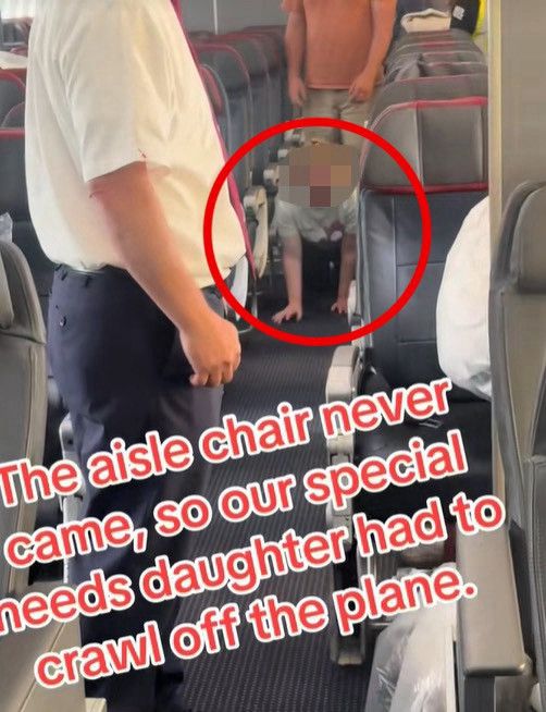 하지만 아메리칸항공은 그로브의 딸에게 통로용 휠체어를 제공하지 않았고, 딸은 결국 직접 바닥을 기어야만 했습니다.