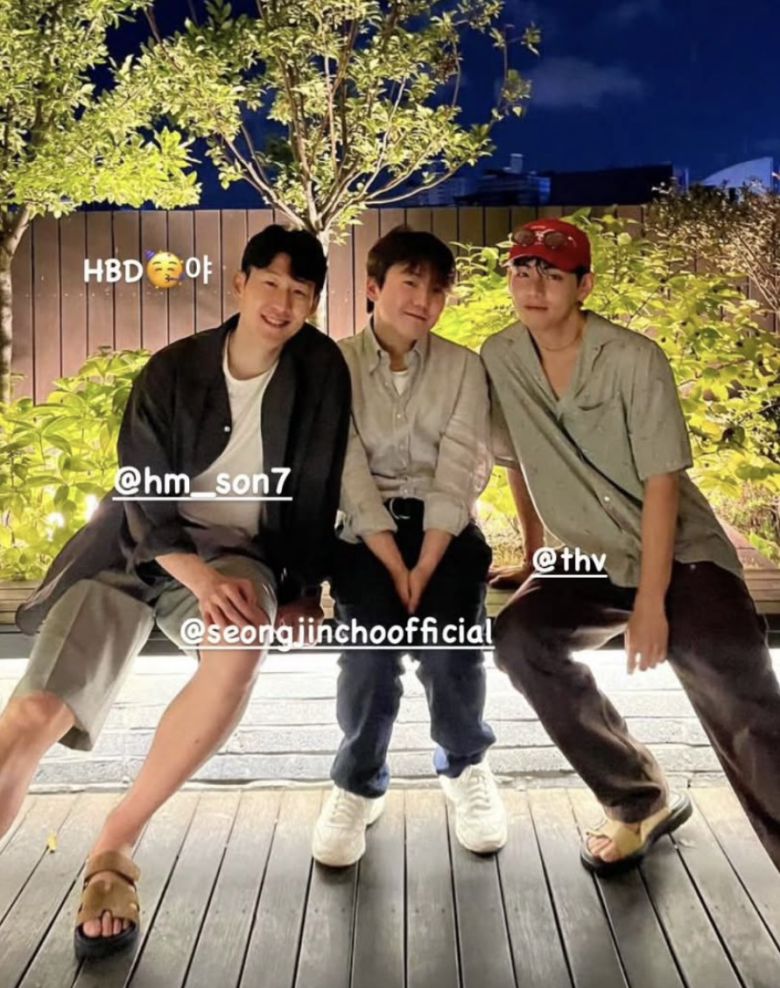 공개된 사진에서 뷔는 손흥민, 피아니스트 조성진과 함께 편한 차림으로 다정하게 앉아 사진을 찍고 있다. 뷔는 이날 생일을 맞은 손흥민을 축하해주기 위해 해당 사진을 게재하며 축하 메시지를 전했다.