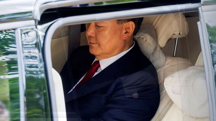 남색 정장 차림에 붉은색 넥타이를 맨 윤 전 대통령은 차량에서 내려 법정으로 들어가는 동안 잔뜩 굳은 얼굴을 하고 있었습니다.