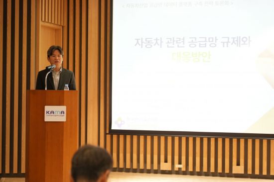 신호정 한국생산기술연구원 실장은 9일 서울 서초구 자동차회관 그랜저볼룸에서 열린 '자동차산업 공급망 데이터 플랫폼 구축 전략 토론회'에서 발언하고 있다. 자동차모빌리티산업연합회(KAMA) |