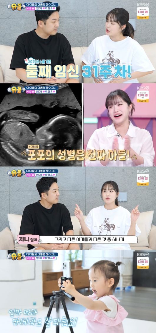 이날 스튜디오에서 헤이지니는 “지금은 둘째가 31주 됐다. 채유도 7월생이었고 포포도 7월생이라서 채유랑 얼마 차이 안 난다. 방송일 기준으로 내일 만난다”라고 밝혔다.
