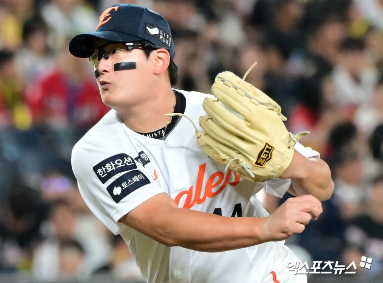 여전히 3점 차, 9회초 올라온 마무리 김서현이 그대로 경기를 끝냈다. 최원준이 1루수 땅볼로 돌아섰고, 고종욱에게 볼넷, 박찬호에게 안타를 맞으며 1사 1, 2루에 몰렸으나 오선우에게 헛스윙 삼진을 이끌어낸 뒤 직전 타석에서 홈런이 있던 위즈덤을 헛스윙 삼진으로 잡으면서 팀의 승리를 완성했다.