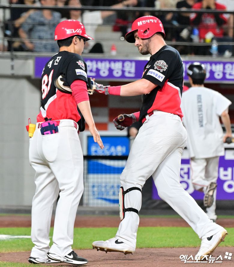 8회초가 되어서야 홈런으로 한 점을 만회했다. 한화 마운드에는 한승혁. 선두타자로 나선 위즈덤이 볼카운트 1-1에서 3구 145km/h 직구를 받아쳐 왼쪽 담장을 넘기는 솔로 홈런을 쏘아올렸다. 위즈덤의 시즌 20번째 홈런. 점수는 4-7, 3점 차가 됐다.