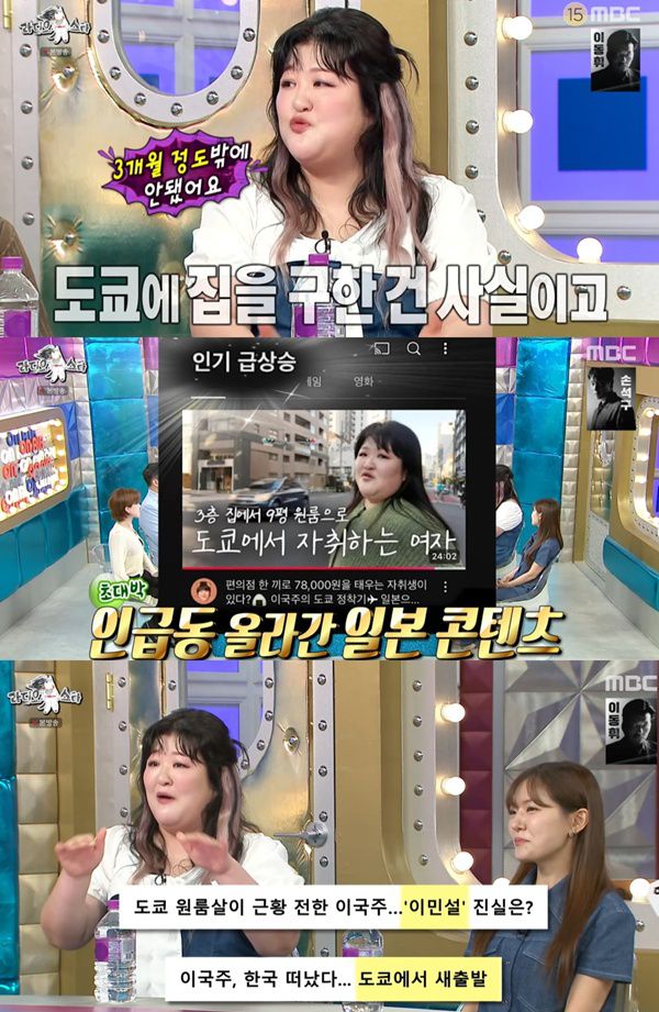 이날 이국주는 최근 제기된 일본 이민설에 대해 "도쿄에 집을 구한 건 사실이다. 3개월 정도 됐다"고 말했다.