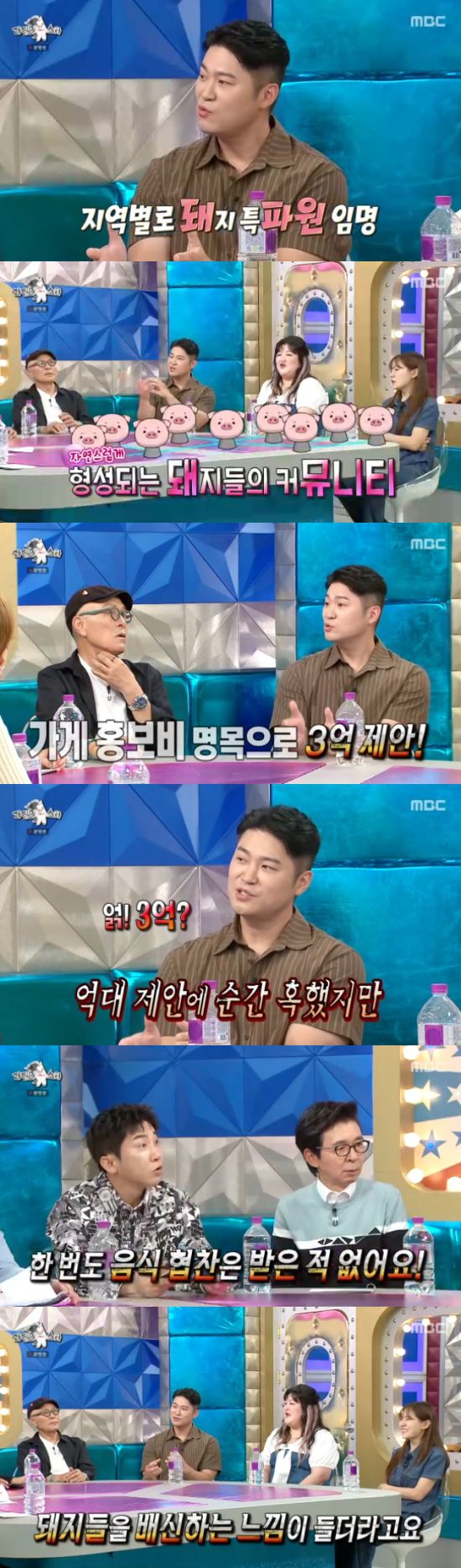 이어 "3억? 혹했지만, 먹는 방송인데 음식 협찬을 받으면 안될 것 같았다. 저희가 술 협찬은 받는데, 음식 협찬을 받은 적은 없다. 음식 협찬을 받으면 진정성이 떨어지니까, 돼지들을 배신하는 기분"이라고 말해 웃음을 자아냈다.