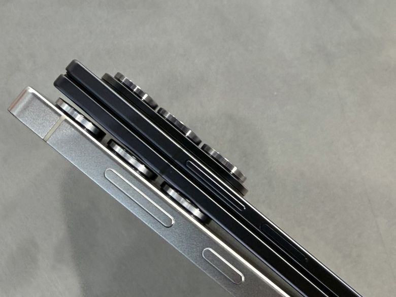 삼성전자는 9일(현지시간) 뉴욕 브루클린 두갈 그린하우스에서 열린 신제품 공개 행사 '갤럭시 언팩 2025'에서 신형 폴더블 스마트폰 갤럭시 Z 폴드7 및 플립7를 전 세계에 소개했다. 사진은 폴드7(위)와 S25 울트라를 겹쳐 비교한 모습. 연합뉴스