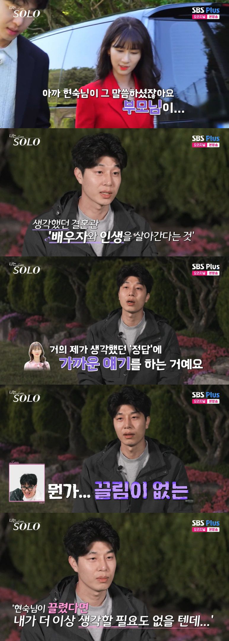 영수는 "그런 얘기를 하셨을 때 한 분이 빠지고 현숙 님이 들어왔다"면서 이후 인터뷰에서도 "생각했던 결혼관, 배우자와 인생을 살아갔다는 거에 거의 제가 생각했던 정답에 가까운 얘기를 하시더라"라고 전했다.