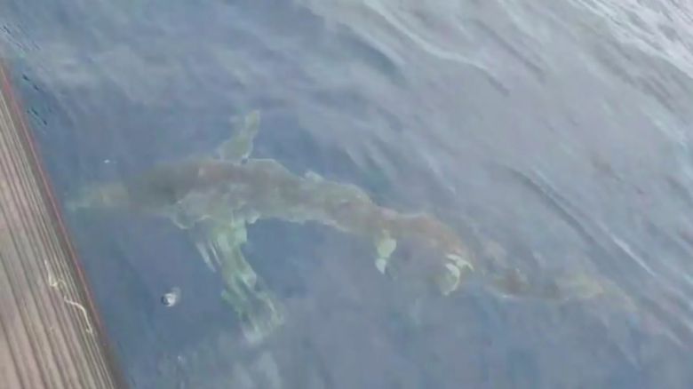 이 상어는 낚싯배 주위를 세 차례 배회한 뒤 해변 방향으로 헤엄쳐 사라졌습니다.