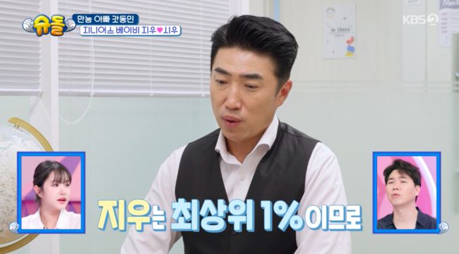 9일 방송된 KBS2 예능 ‘슈퍼맨이 돌아왔다’(이하 ‘슈돌’)에서는 아빠 장동민의 지니어스 DNA를 물려받은 35개월 지우가 영재검사를 받았다.