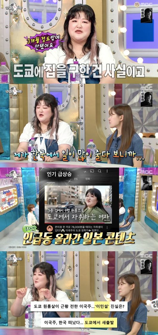 이날 유세윤운 “최근 일본 이민설로 화제가 됐다”라고 언급했다. 이국주는 “도쿄에 집을 구한 건 사실이다. 3개월 정도밖에 안됐다”라며 “제가 한국에서 일이 많이 줄다 보니까 고정 했던 것도 다 끝나고 해서 내가 한국에 일이 없다고 가만히 기다리기만 하기는 그랬다”라고 밝혔다.